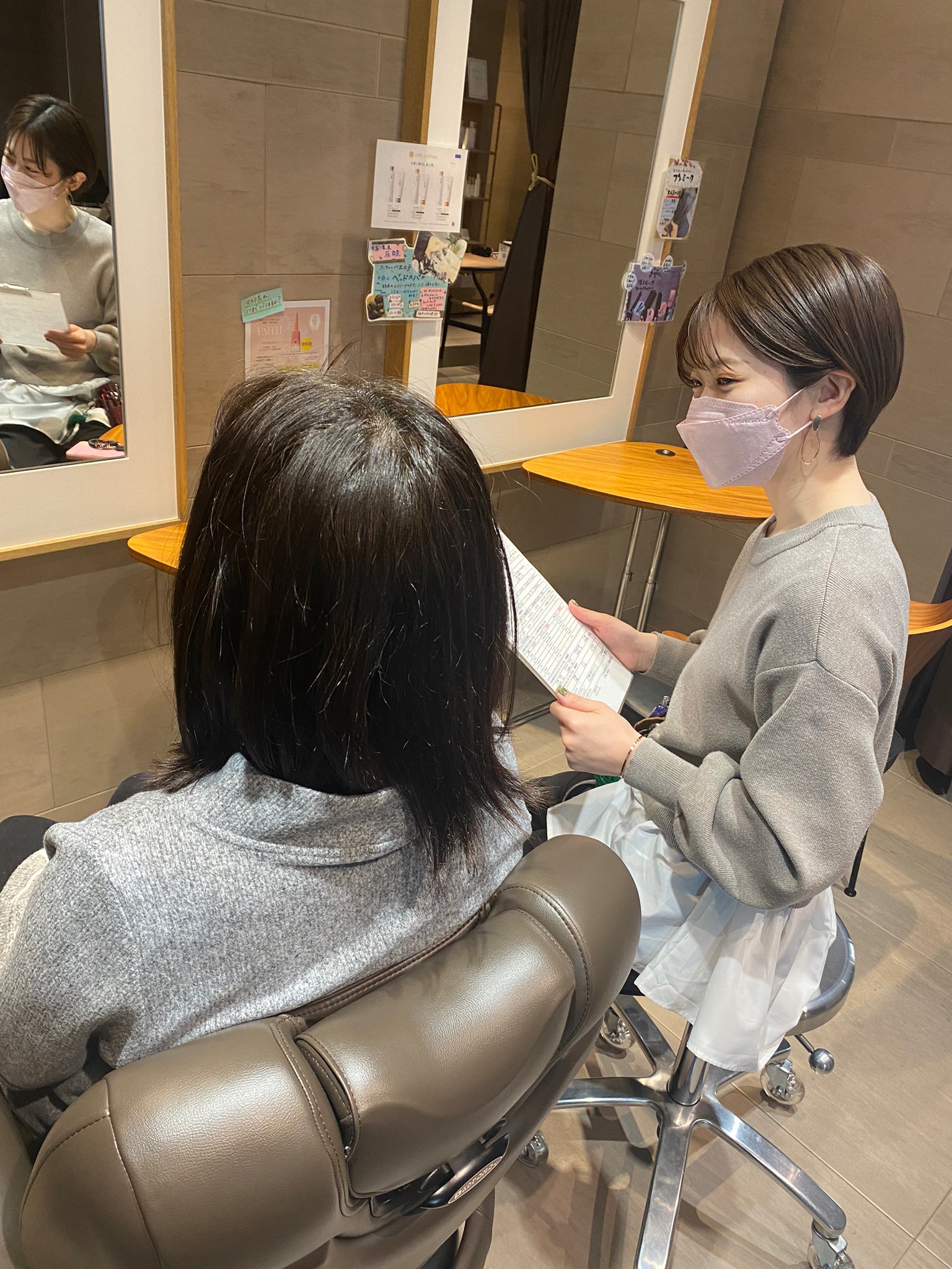 あなたに満足して頂く為に、私たちは初回のカウンセリングとカルテ作りを徹底しています。これがしっかりとできていないと、お客様とスタイリストの認識ズレが生じてしまいます。そうならない様に”初回”のみ特にお時間を頂きます。2回目以降は、前回の施術からの髪質の変化を確認してからスタートします。1回目ほどのお時間はかかりませんのでご安心くださいませ。